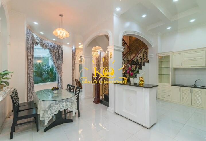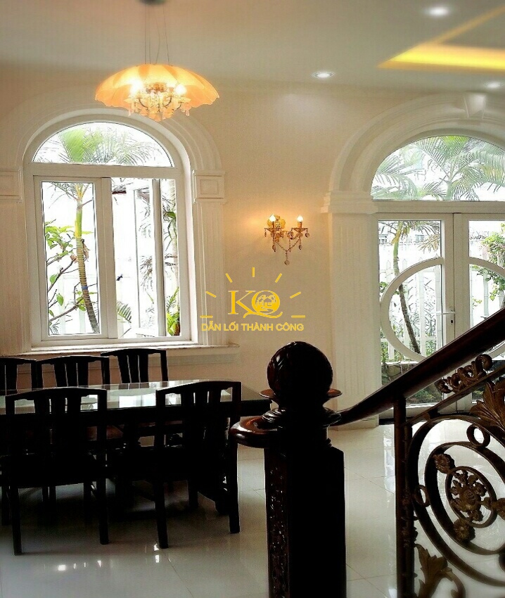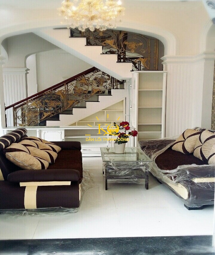 Nhà cho thuê đường Trần Não không gian phòng khách sang trọng nội thất tiện nghi, phòng bếp, phòng ngủ trang bị nội thất theo phong cách Châu Âu.