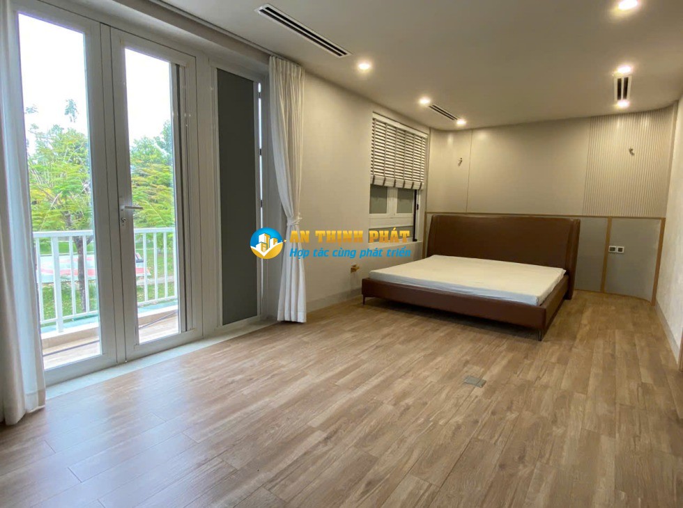 Căn biệt thự nhìn trực diện sông với khu công viên dọc bờ sông, sân bóng rỗ tennis, hồ bơi, không gian nhà thoáng đẹp với thang máy riêng bếp nhìn ra sân thoáng mát