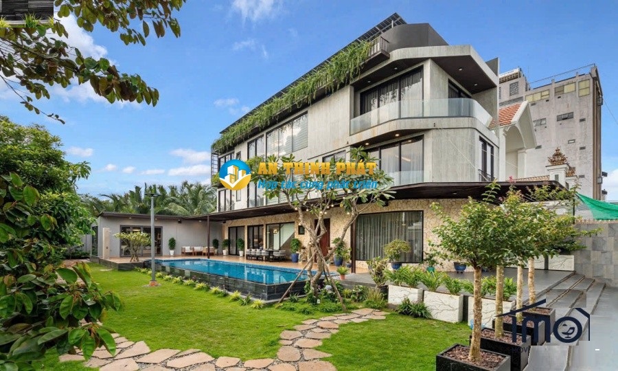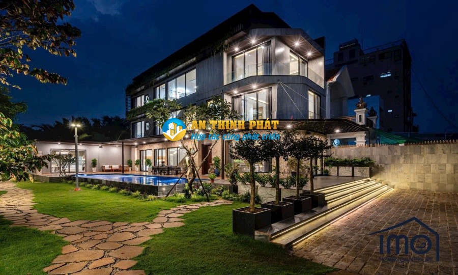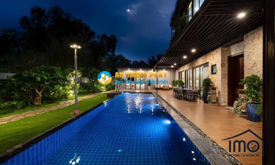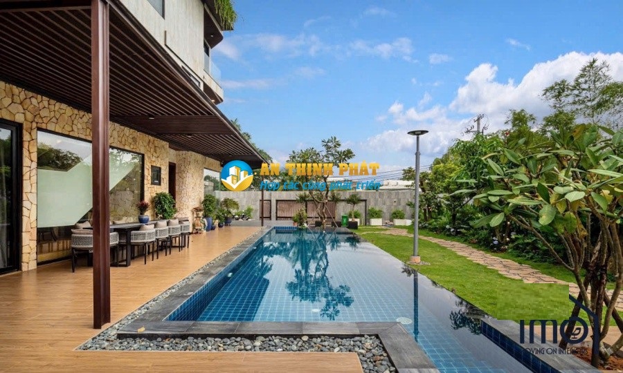 - Sân vườn rộng 600m2 và hồ bơi dài 17m. Gara đậu được 2-3 xe ô tô